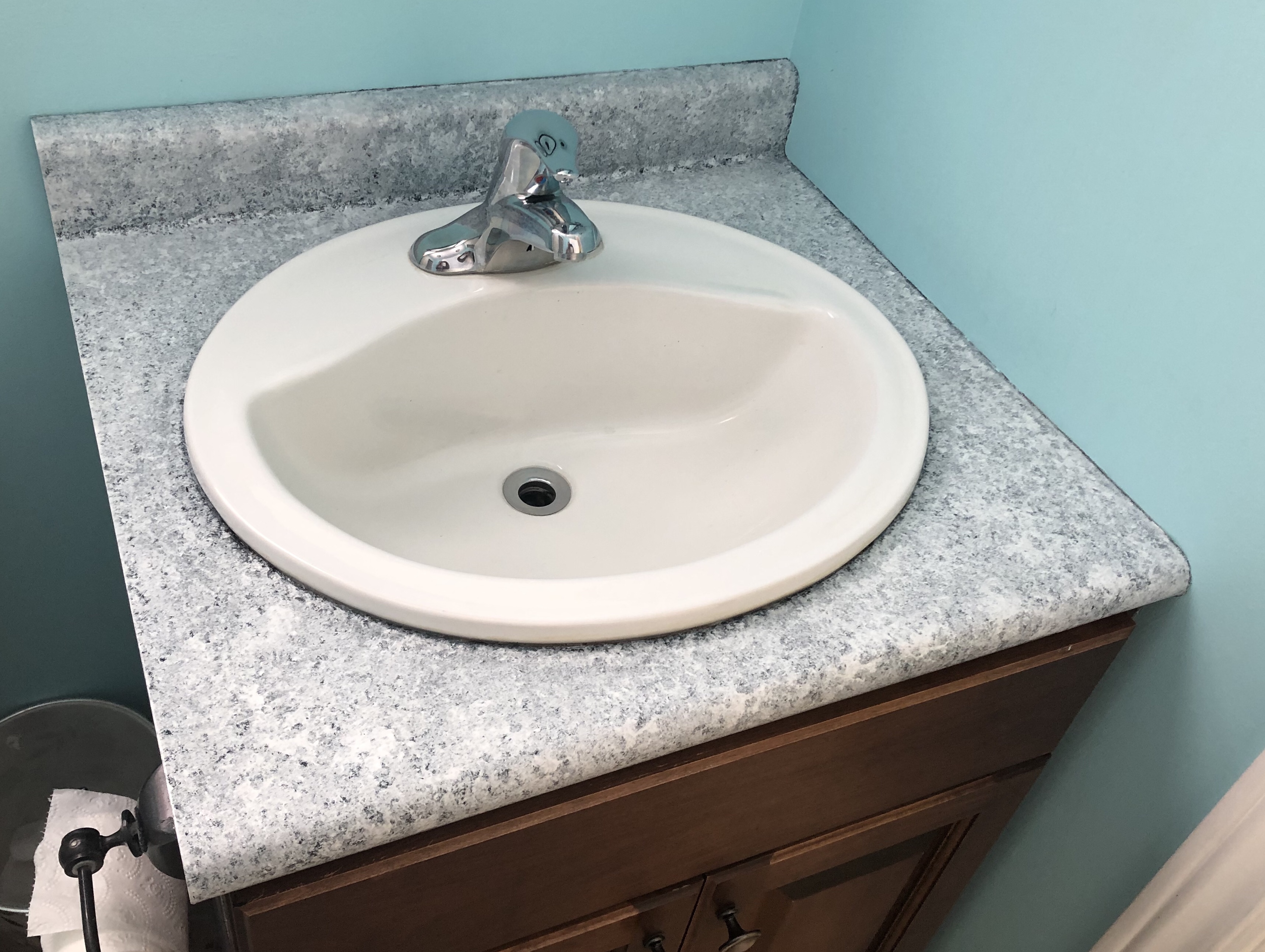 We debated replacing it, but when Covid-19 hit the area, I decided it was a great time to look into a product my friend Candice had suggested. You basically repaint / refinish the counter. I ordered the kit on Amazon and it arrived very quickly.